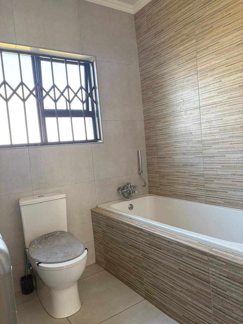 The main bedroom features a private en-suite bathroom, adding an extra touch of privacy and luxury. All three bedrooms are generously sized, providing ample space for rest and relaxation. The fully tiled interior boasts a modern and spacious kitchen complete with a scullery, flowing seamlessly into the open-plan lounge and dining area – ideal for entertaining guests or enjoying quality family time.