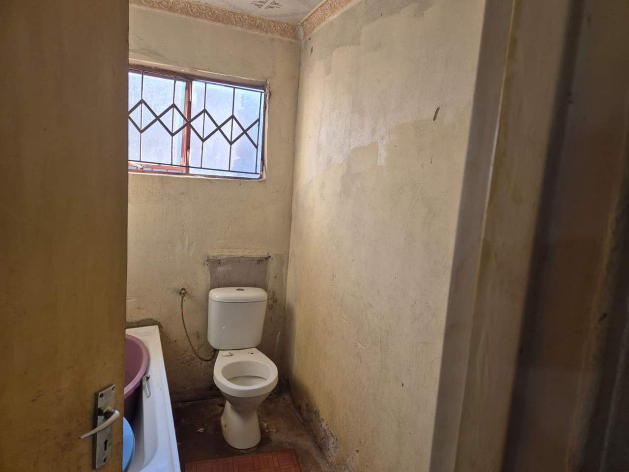 The spacious bathroom is well-maintained, and for added convenience, there's an outside toilet.