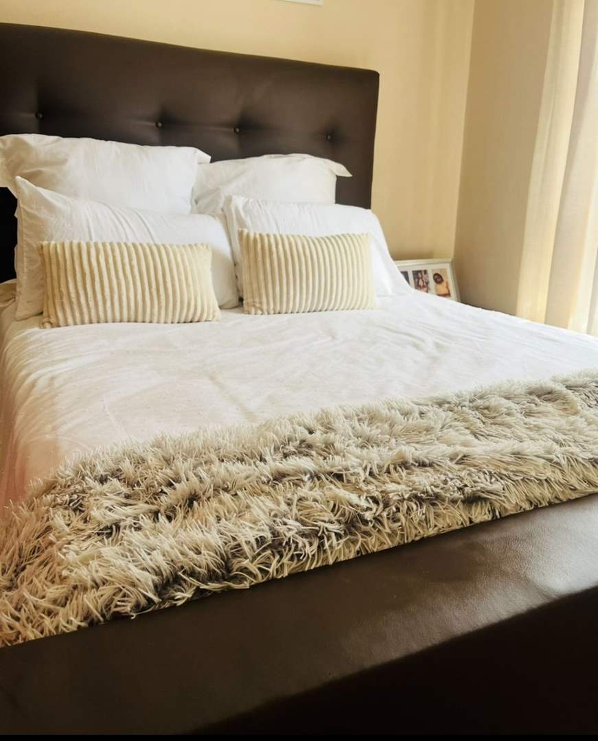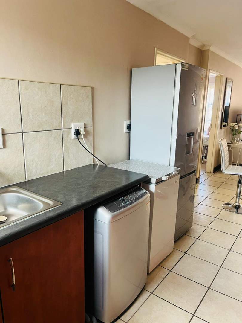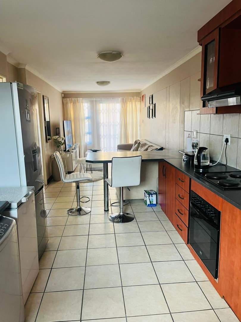 The apartment features two well-sized bedrooms with built-in cupboards, a neat bathroom, and an open-plan lounge and kitchen that creates a bright and welcoming living space.