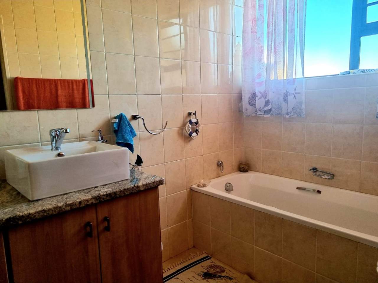 Outside you will find a toilet, a double Garage with electric doors, and shade net parking for six vehicles. The garden is in immaculate condition.