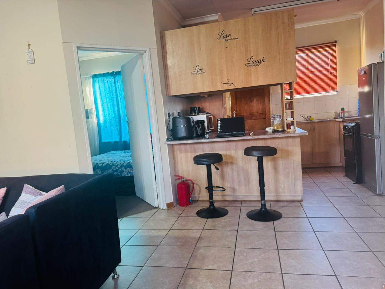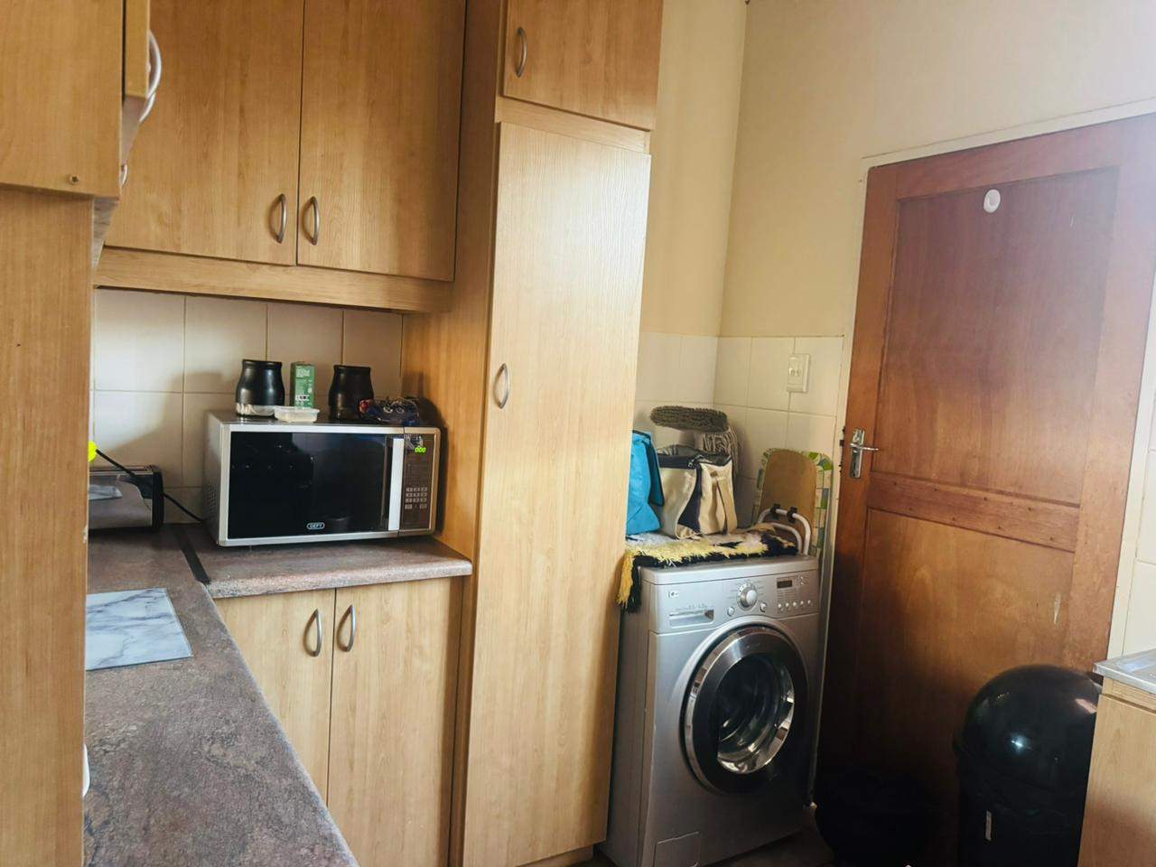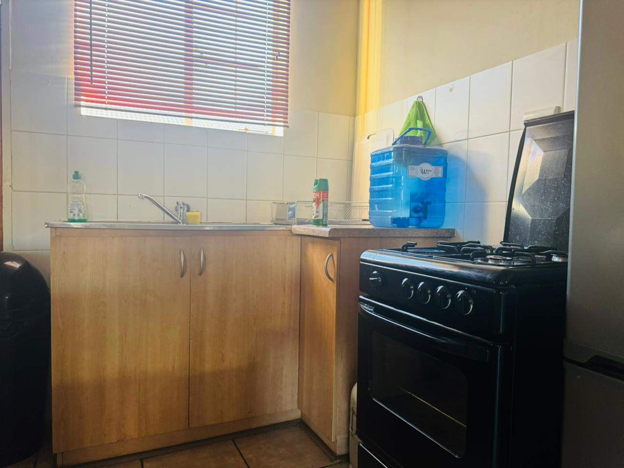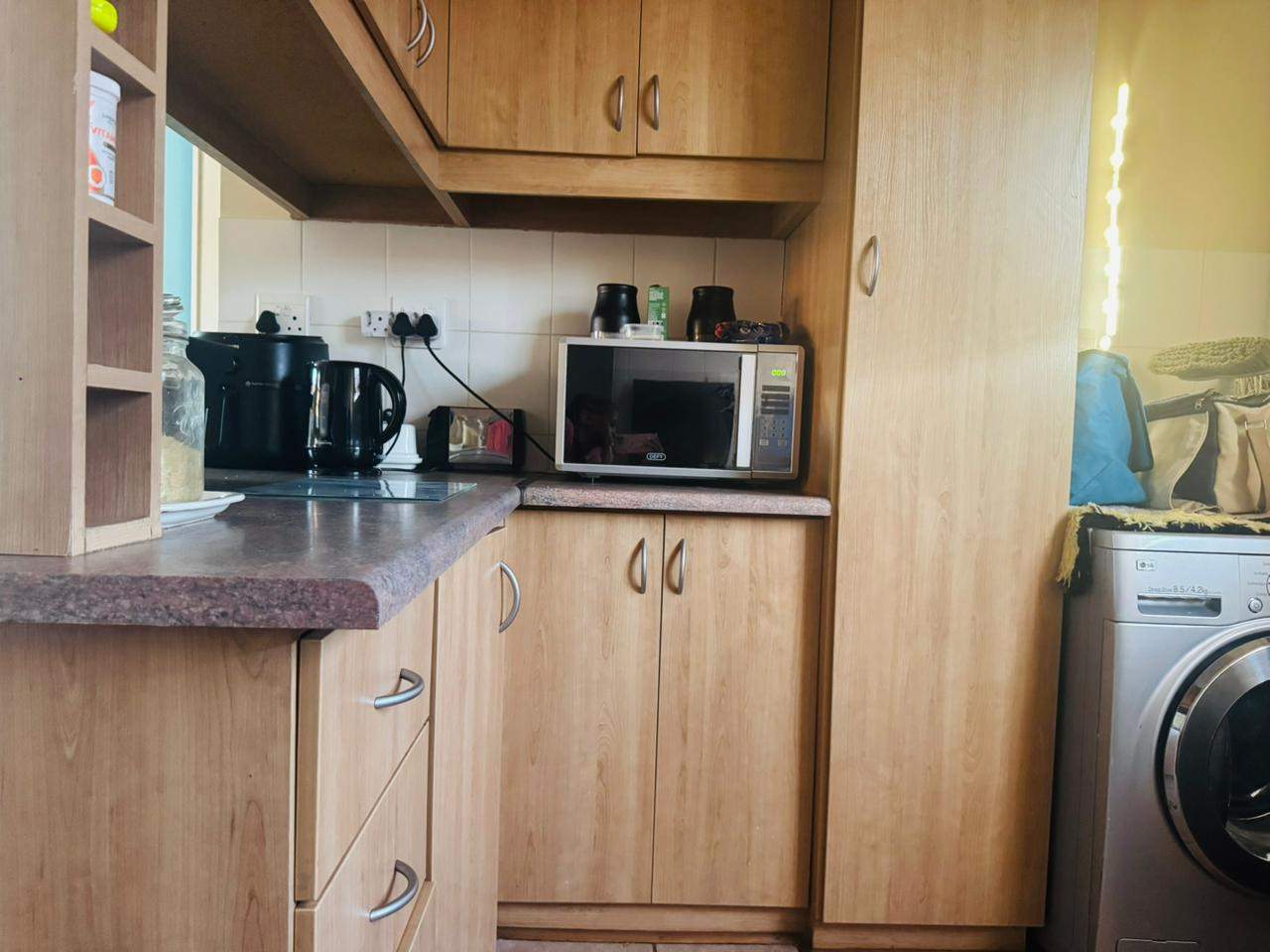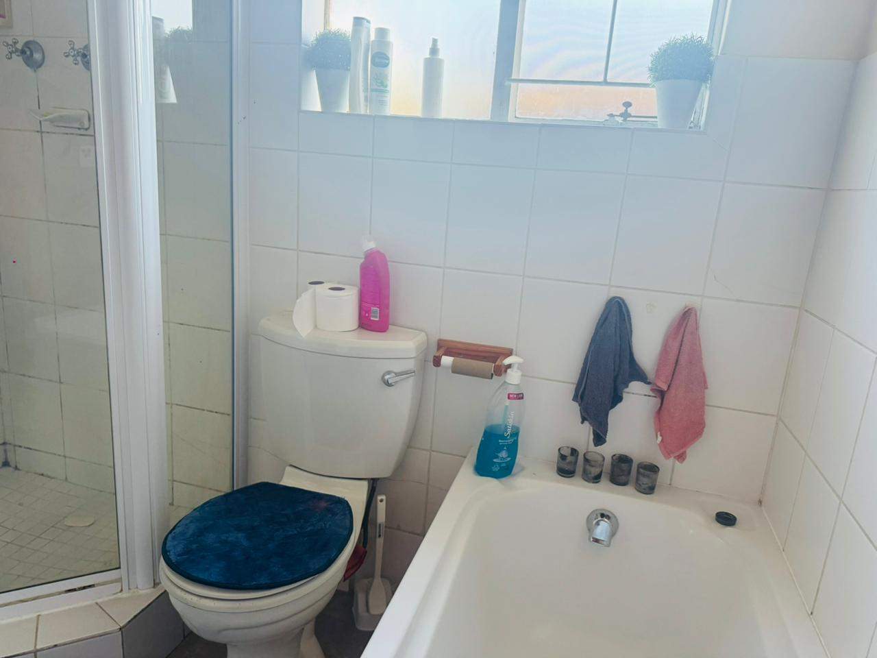 The unit consists of two bedrooms with built-in cupboards, a full bathroom and an open-plan lounge and kitchen with ample cupboard space. As you go out through the sliding door, there is an immaculate private garden area for your use. A lovely space to host family and friends over a braai in the summer days.
