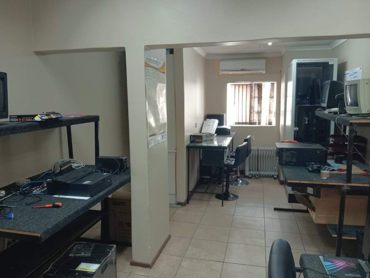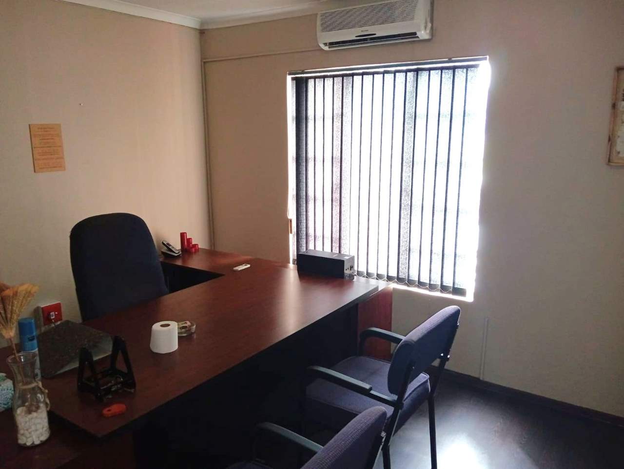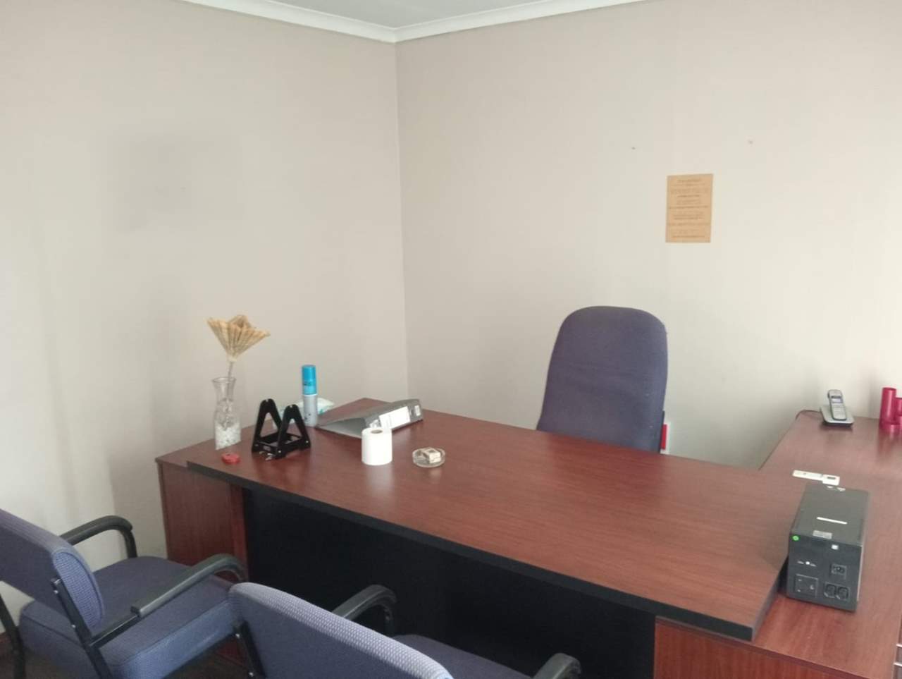 The property is located in an established commercial business and residential area in the central area of Bloemfontein near great amenities such as Mimosa mall, Waterfront mall, Medic clinic Hospital, Eduvos private University etc.. The property is a corner block stand in a fairly busy street and surrounded by other business properties. It is currently operating as offices that can be easily converted into two separate units. The property has 4 offices, technical space with a storage. It has 7 fire extinguishers in total, Camera, alarm system and 3 more storages. The property has two main switches for each unit and each unite is being sold for R867,975. There is a boardroom that can be turned into a spacious lounge if it can be turned into an apartment. The property is being sold with the furniture included.