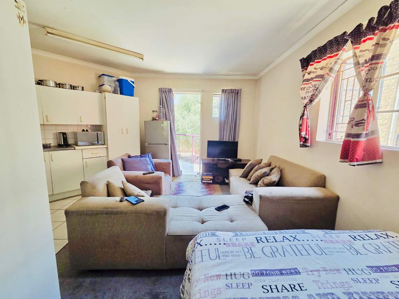 The unit offers a functional kitchen with built-in cupboards and pre-paid electricity, making monthly expenses simple to manage. The bathroom is neatly finished and fitted with a shower, toilet, and basin.