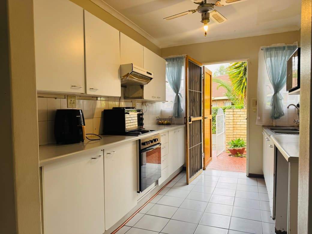 A lovely open plan lounge and dining room with a built in fire place. Open plan kitchen with built in cupboard space and the townhouse also has a double garage. There is a sliding door in the lounge that leads to a private initmate garden.