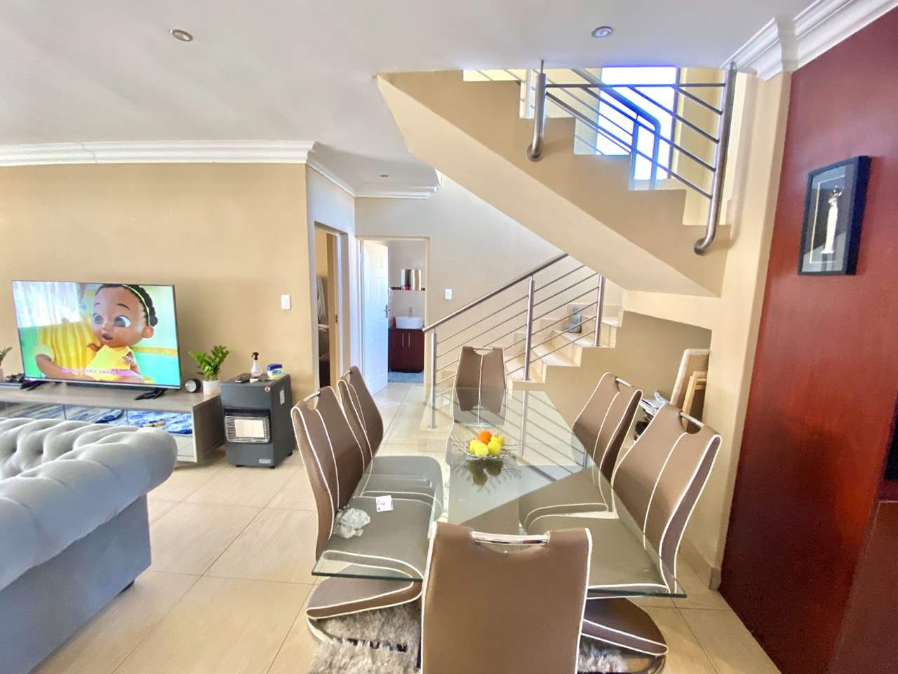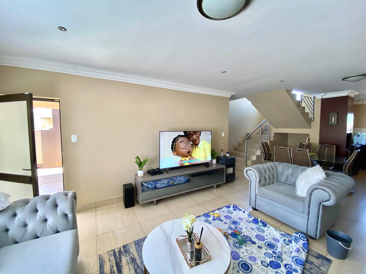• Lounge: Open-plan layout with modern tiled flooring, creating a bright and airy ambiance