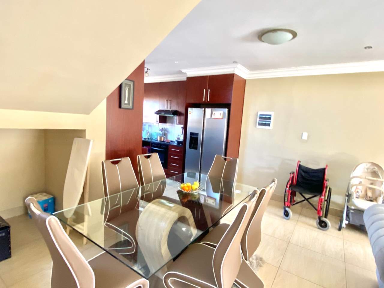 • Kitchen: Open-plan design with tiled floors, seamlessly flowing into the lounge