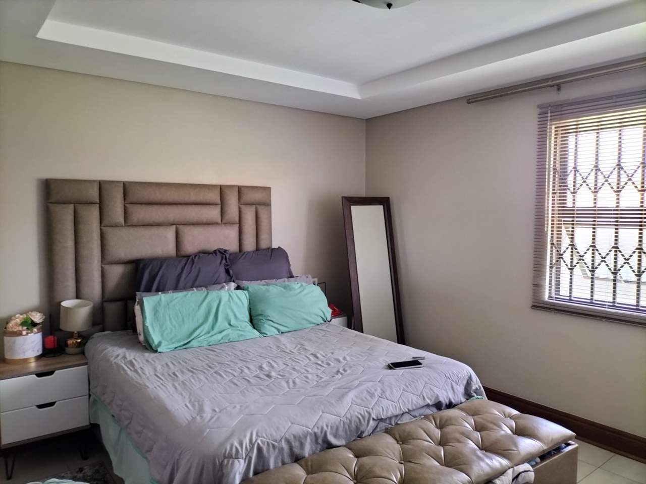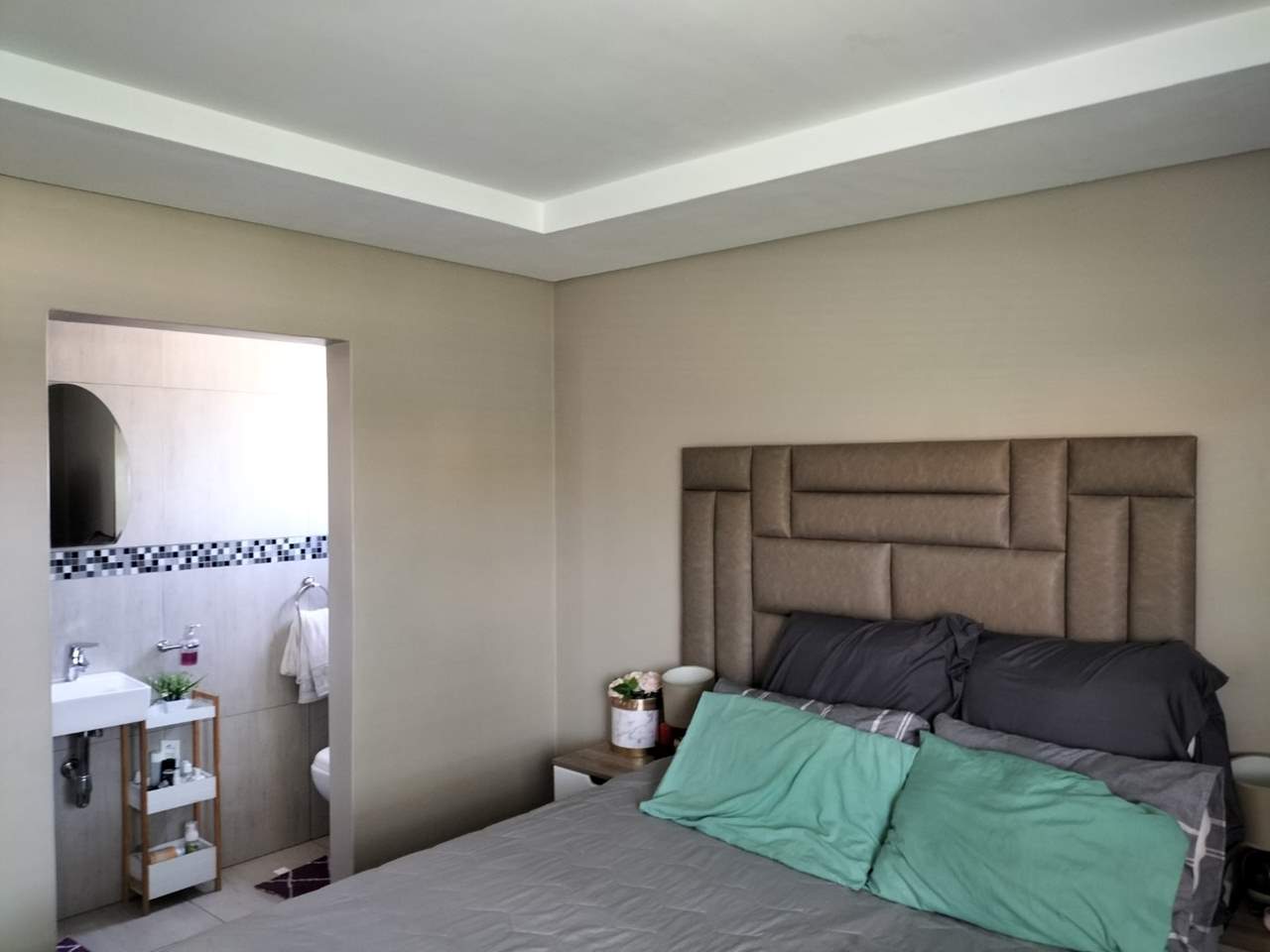 Two spacious bedrooms with built-in cupboards and two bathrooms.