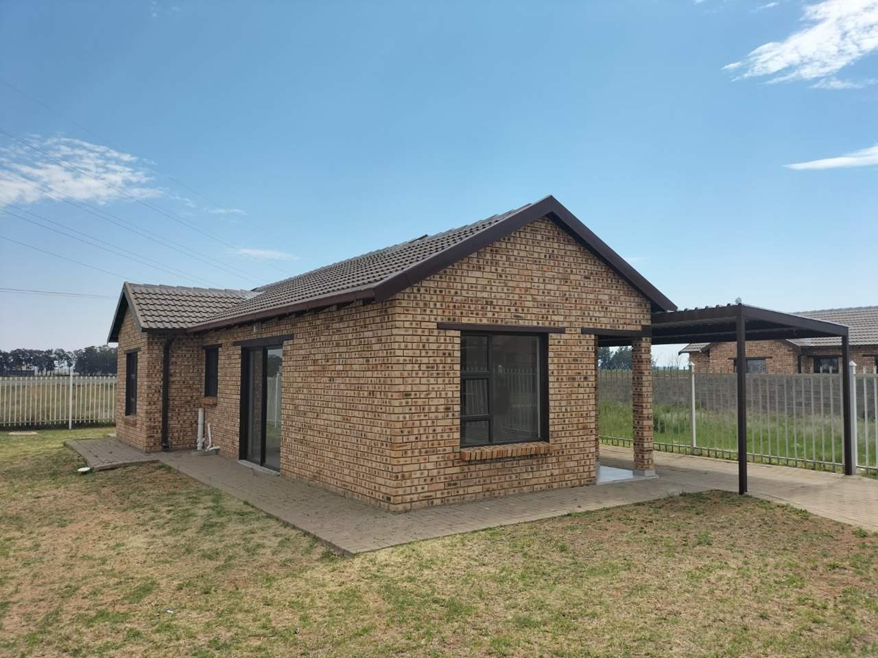 This property is brand new and offers a spacious yard with a single carport .
