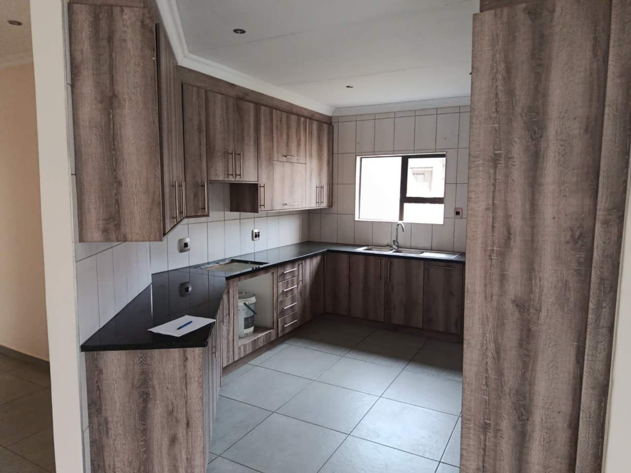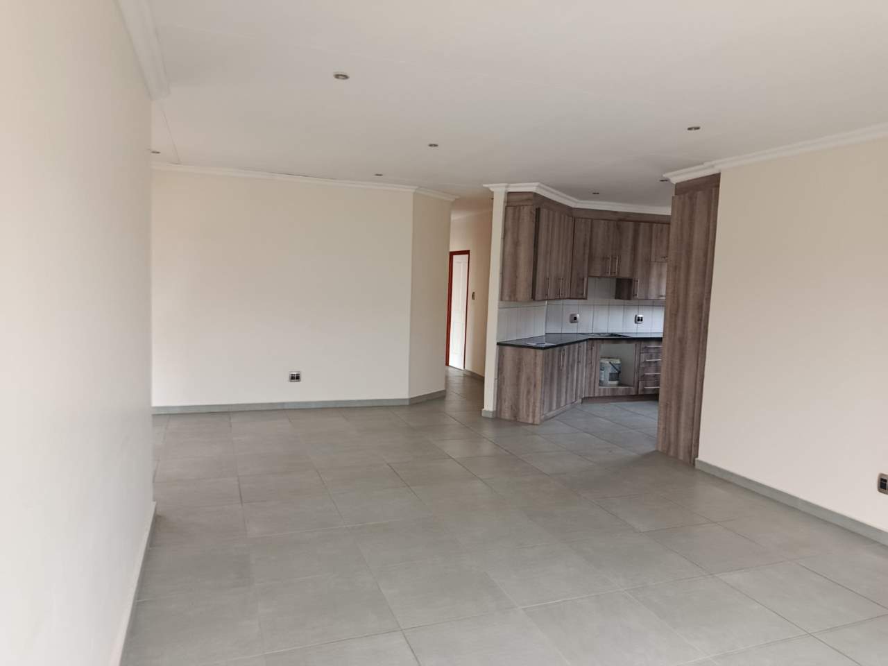 The open-plan lounge is a central feature of the home, offering a large, versatile space for relaxation and entertaining. It connects directly with the kitchen, making it easy to socialize while preparing meals. This layout also makes the space feel more spacious, with a sliding to the braai area.
