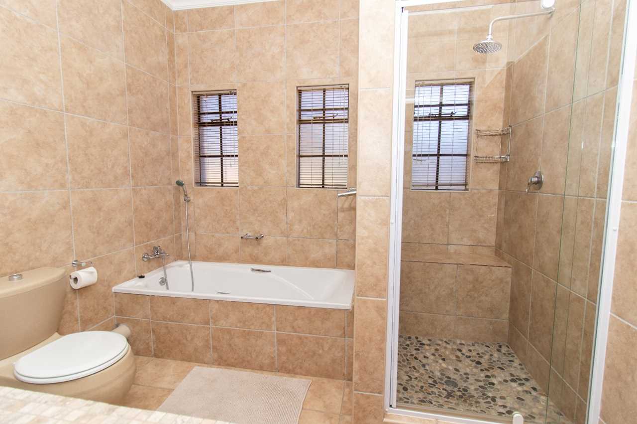 It’s a double story house, offering an open plan living space, with a kitchen, gas hob and electric stove, ample cupboard space, a breakfast nook and scullery, a lounge and dining room, with a built-in braai that opens onto a big porch with a breathtaking view.