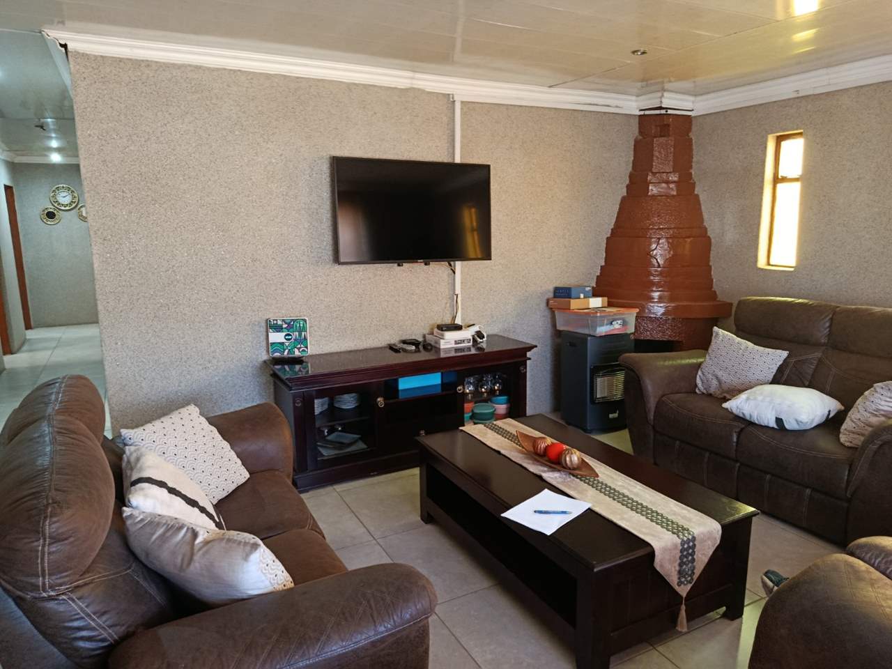 This well-secured three-bedroom house offers a comfortable and practical living space for a family. The interior is designed for functionality, featuring a dedicated lounge for relaxation and a separate dining room perfect for meals and entertaining. A functional kitchen provides the essential space for cooking, while the bathroom is fitted with both a toilet and a bath. The property is move-in ready, presenting a neat and straightforward home layout.