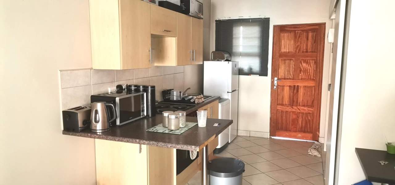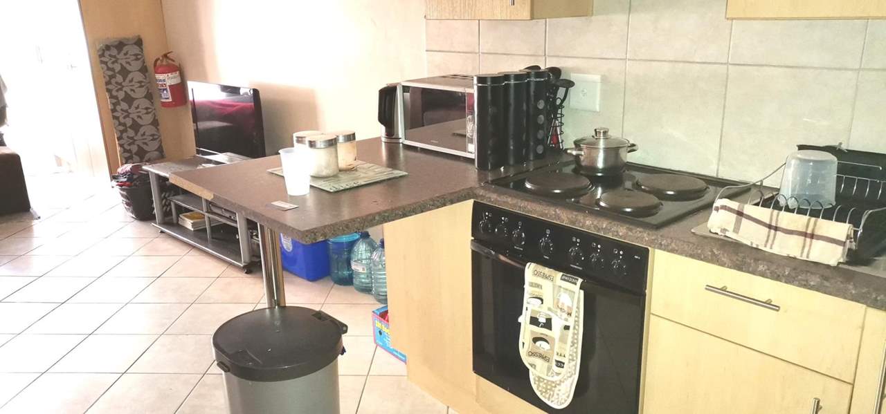 This is your chance to buy this affordable bachelor flat. Open plan bedroom with built-in cupboards, open plan living area with built-in desk, bathroom with shower, toilet and basin, kitchen with built-in cupboards, built-in stove and washing machine connection. Prepaid electricity, shade net carport and cell to gate. Surveillance cameras cover the whole area and a laundromat on the premises. Close to Langenhovenpark with a variety of shops, restaurants, nurseries, petrol stations and gym.